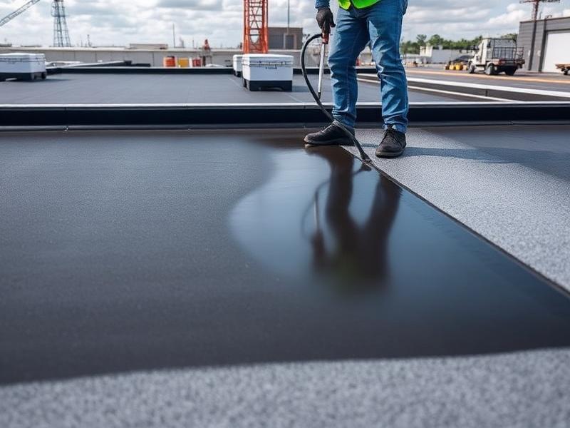 Commercial building roof coating application